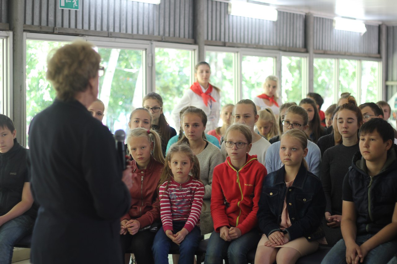 В наше время, когда не редки попытки переписать, исказить память о прошлом, важно помнить историю своего народа и историю своей страны. Поэтому на протяжении всего дня с ребятами проводились тематические беседы, а утро началось с линейки памяти. После линейки в гости к ребятам приехал председатель клуба “Стойкость” бывших несовершеннолетних узников фашистских лагерей Денисова Виктория Георгиевна, узница концлагеря “Белая калитва”, Ростовская обл., и музыкант, член клуба, Ковалёва Виктория Владимировна. Виктория Георгиевна рассказала историю, как попала в лагерь, как выжила и как ее спасли. Рассказ произвел неизгладимое впечатление на ребят, ведь осознание того, что перед ними стоит человек, видевший войну и знающий все ее ужасы, поражало. После полдника ребята смотрели фильм “28 панфиловцев”, а после ужина отправились на вечер памяти.