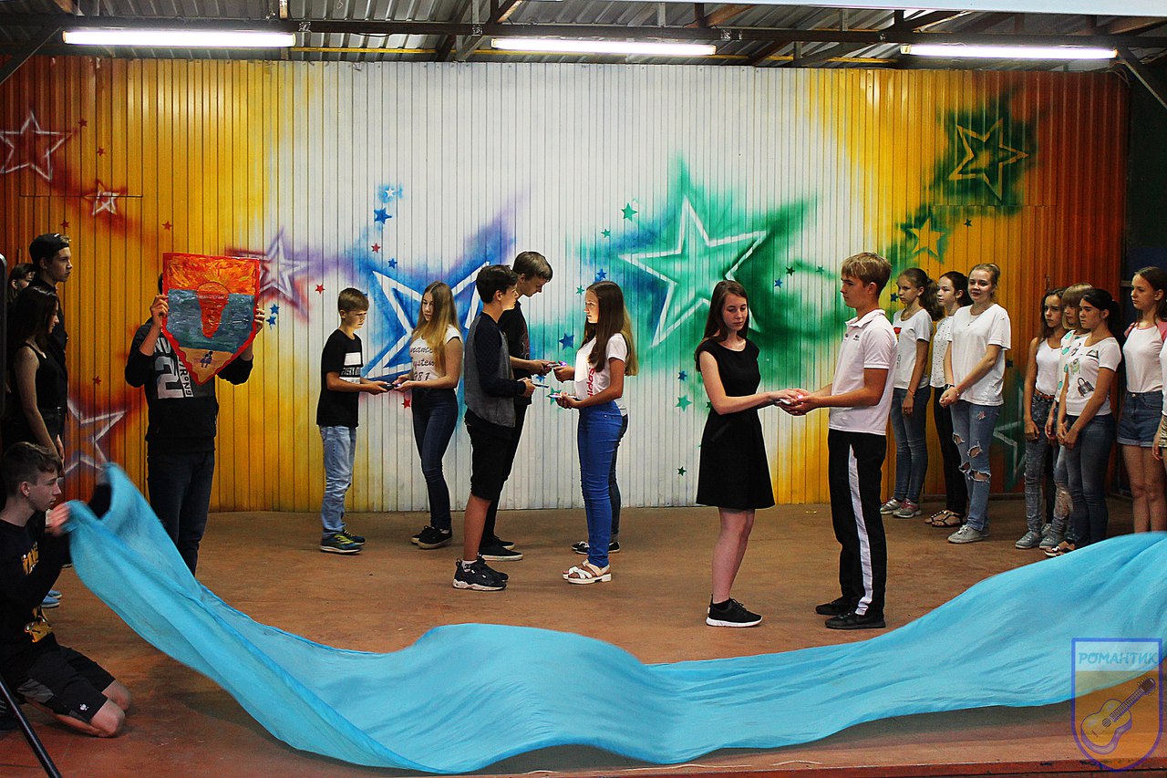 Утро в Романтике началось, как и положено, с бодрящей и энергичной зарядки. После завтрака ребята вместе с вожатыми думали над тем, что будет изображено на отрядном вымпеле и как лучше всего его будет представить. Кот Матроскин, царь подводного царства Тритон, красивые изгибы волн и многое другое изобразили на своих вымпелах экипажи. После полдника для старших ребят была проведена игра «Где логика?», а для младших был устроен конкурс рисунков на тему: «Море желаний». На этом насыщенная лагерная жизнь не закончилась, ведь после этого ребята отправились на квест-игру «Джуманджи», а завершением дня стала презентация и защита отрядных вымпелов, победителем которого стал экипаж под номером 2А.